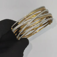 Die kunstvoll geschwungenen Linien und der Kontrast aus warmem Roségold und kühlem Weißgold machen den Armreif zu einem unverwechselbaren Highlight jeder Schmucksammlung. Mit einem Gewicht von 65 g und einer Breite von 24 mm strahlt er Präsenz und luxuriöse Wertigkeit aus.