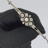 Antike Art Déco Brosche aus Gold & Platin mit Diamanten und Perle