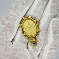 Dieses Modell kann sowohl als Anhänger an einer Kette getragen werden als auch als dekoratives Schmuckuhr-Pendant – ein vielseitiges Accessoire für Liebhaberinnen klassischer Eleganz.