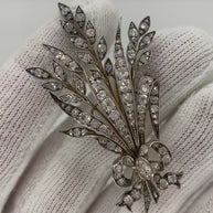 Große, Antike Weißgold Diamant-Brosche als Blumenstrauß mit Schleife
