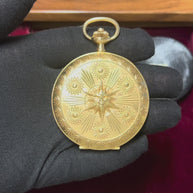 Außergewöhnliche und extrem seltene IWC Taschenuhr „Scarabaeus-Fuchs-Savonnette“, gefertigt in 18 Karat massivem Gelbgold, Schaffhausen, um 1982. Ein echtes Sammlerstück – sowohl technisch als auch künstlerisch ein Meisterwerk.